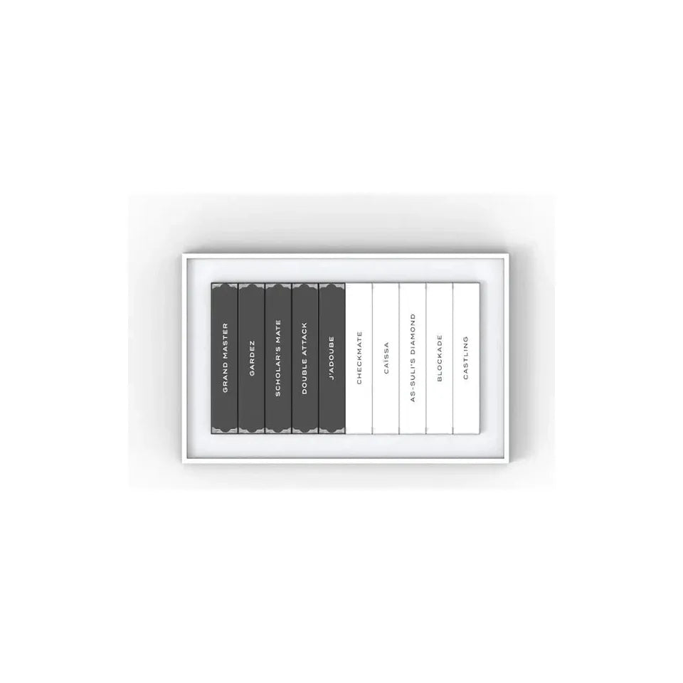 Checkmate, Caïssa, As-suli’s Diamond, Blockade, Castling, Grand Master, Gardez, Scholar’s Mate, Double Attack, J’adoube